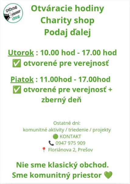 KAŽDÝ PIATOK – ZBERNÝ DEŇ ( letné oblečenie, hračky , domáce potreby , hrnce , taniere ..)